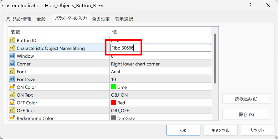 チャート上のライン表示をボタンでON/OFF可能にするインジケーター「Hide_Objects_Button_BTEv」