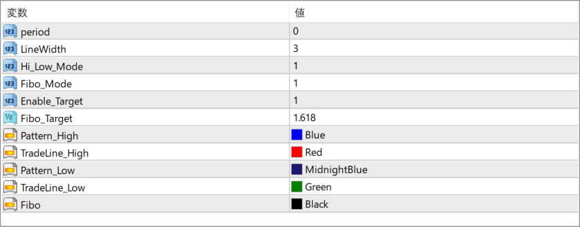 ジグザグ計算に使用する期間を指定します。0の場合は自動設定となります。