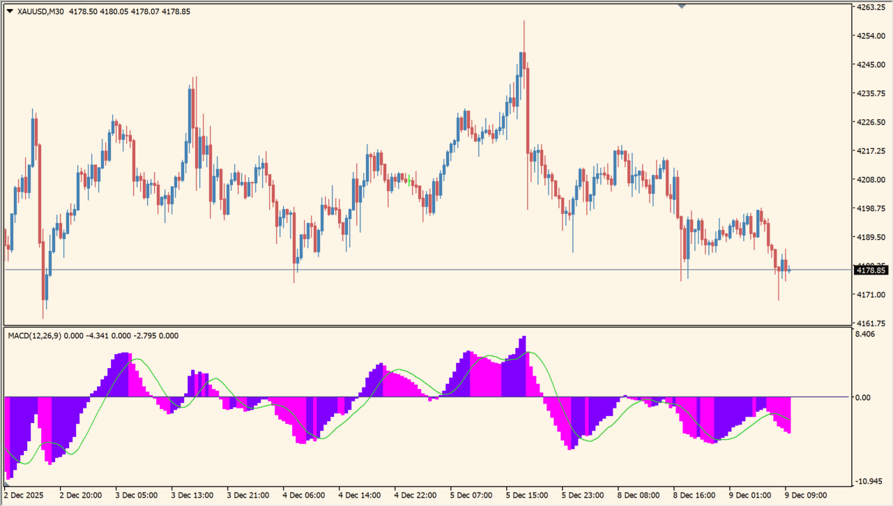 ヒストグラムはトレンドの強さと転換の兆候を示し、色の変化で強気・弱気・中立状態を直感的に把握できます。