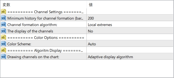 チャネル形成に使用する過去バー数を指定します。大きいほど長期的なチャネルになります。