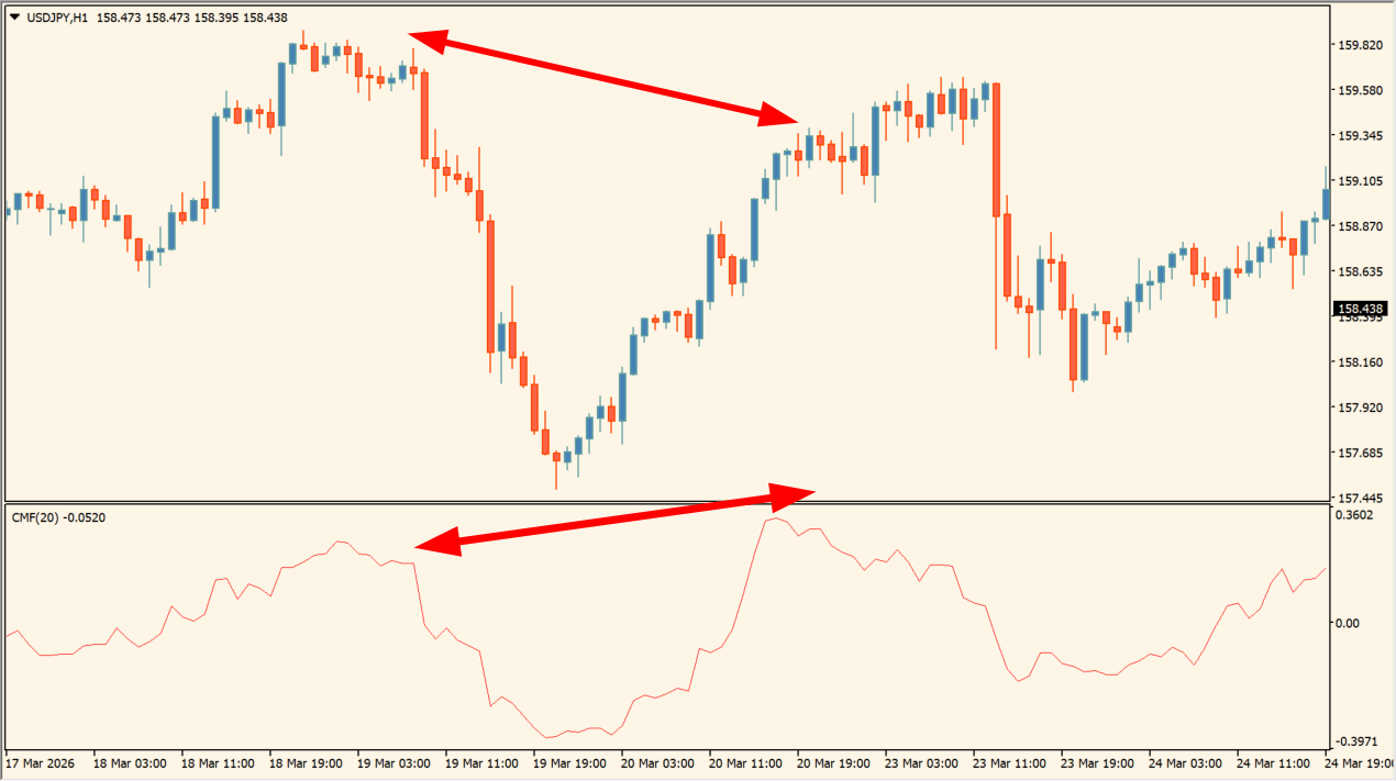 chaikin-money-flow-indicator基本的には価格に追従しますが、追従しないときは注意が必要