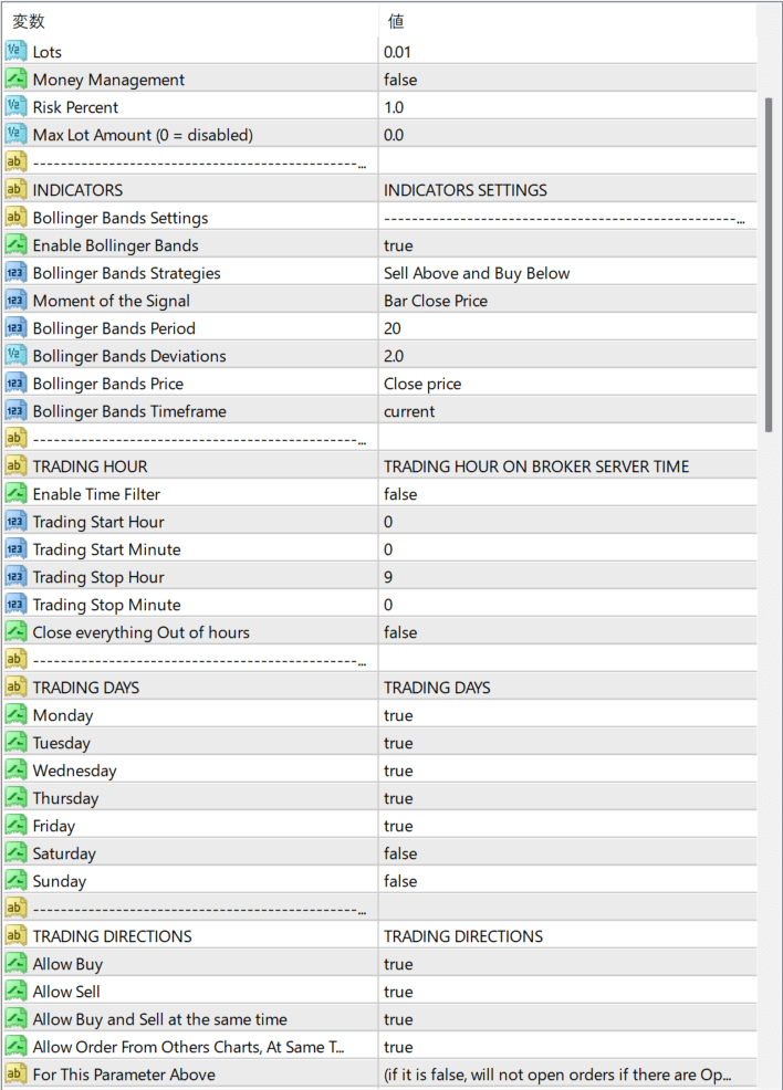 バンド上で売り、下で買うなど売買方針を指定します。