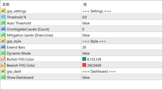 FVGとして認識するギャップの最小割合を設定します。数値を上げると大きなギャップのみ抽出されます。