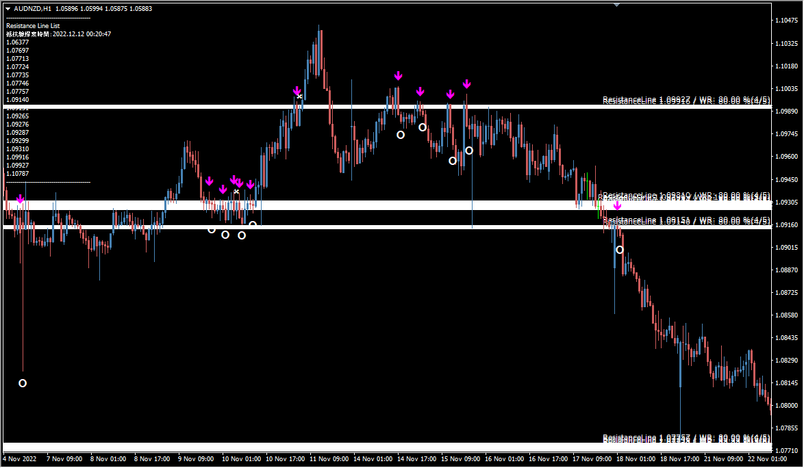 実際に反発した抵抗帯ラインのみを表示「ResistanceLineSeeker」