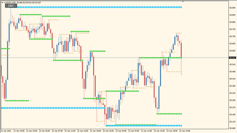 時間帯別のサポートレベルとレジスタンスレベルを自動描写してくれるインジケーターです。