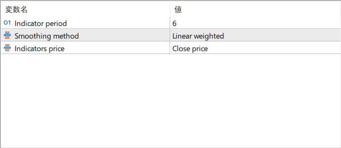 平滑化の手法を選択します。Linear weightedは最近の価格により重みを置きます。