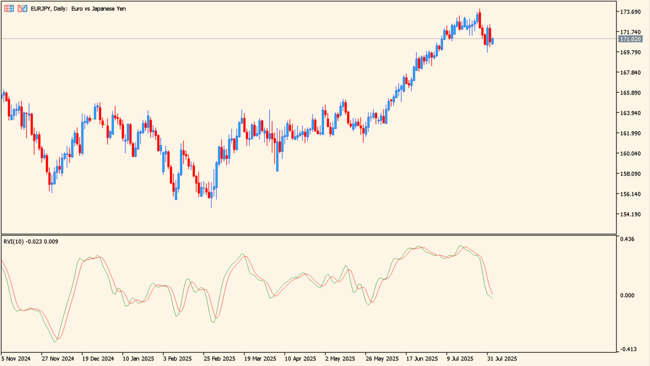 Relative Vigor Index(RVI)は、価格の終値と始値の関係から勢い(バイアス)を測定し、トレンドの強さや転換ポイントを視覚的に捉えるオシレーター系インジケーターです。