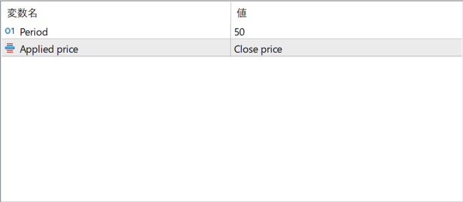 インジケーターの計算期間を指定します。期間が長いほどトレンド変化に対して鈍感になります。