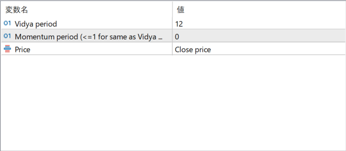 モメンタムを計算する期間を設定します。0または1にするとVidya periodと同じ期間が使用されます。