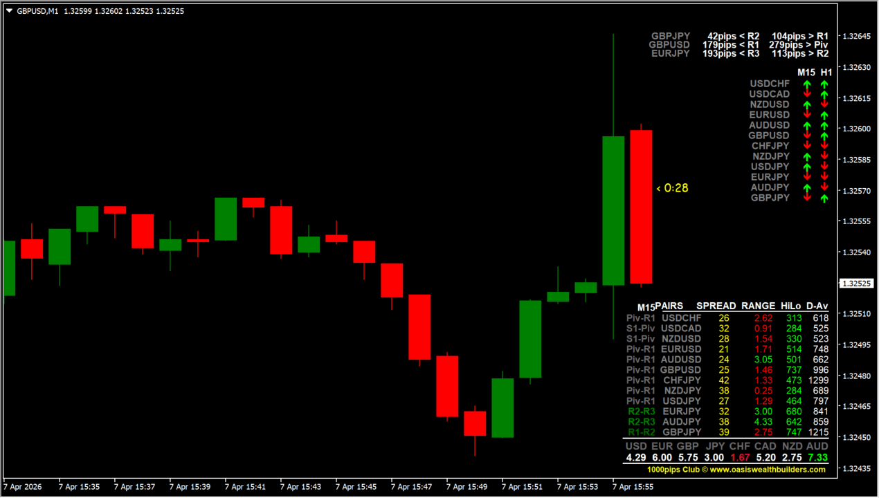 またスプレッドや当日の値幅も表示されるため、ボラが低い相場やコストが高い場面を避ける判断にも使えます。複数の分析要素を一画面で確認できるため、無駄なインジの併用を減らし、判断スピードを高められます。