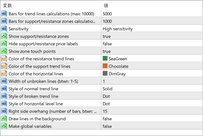 サポート・レジスタンスゾーンの算出に使用するバー数を指定します