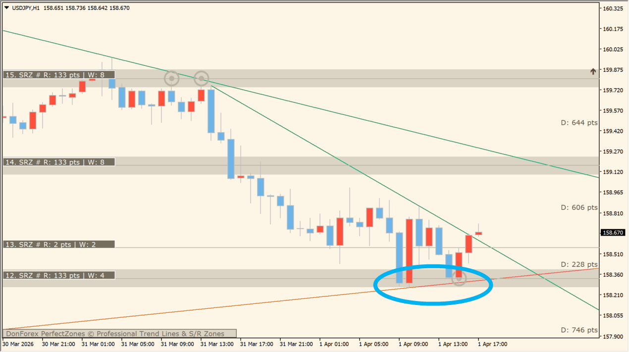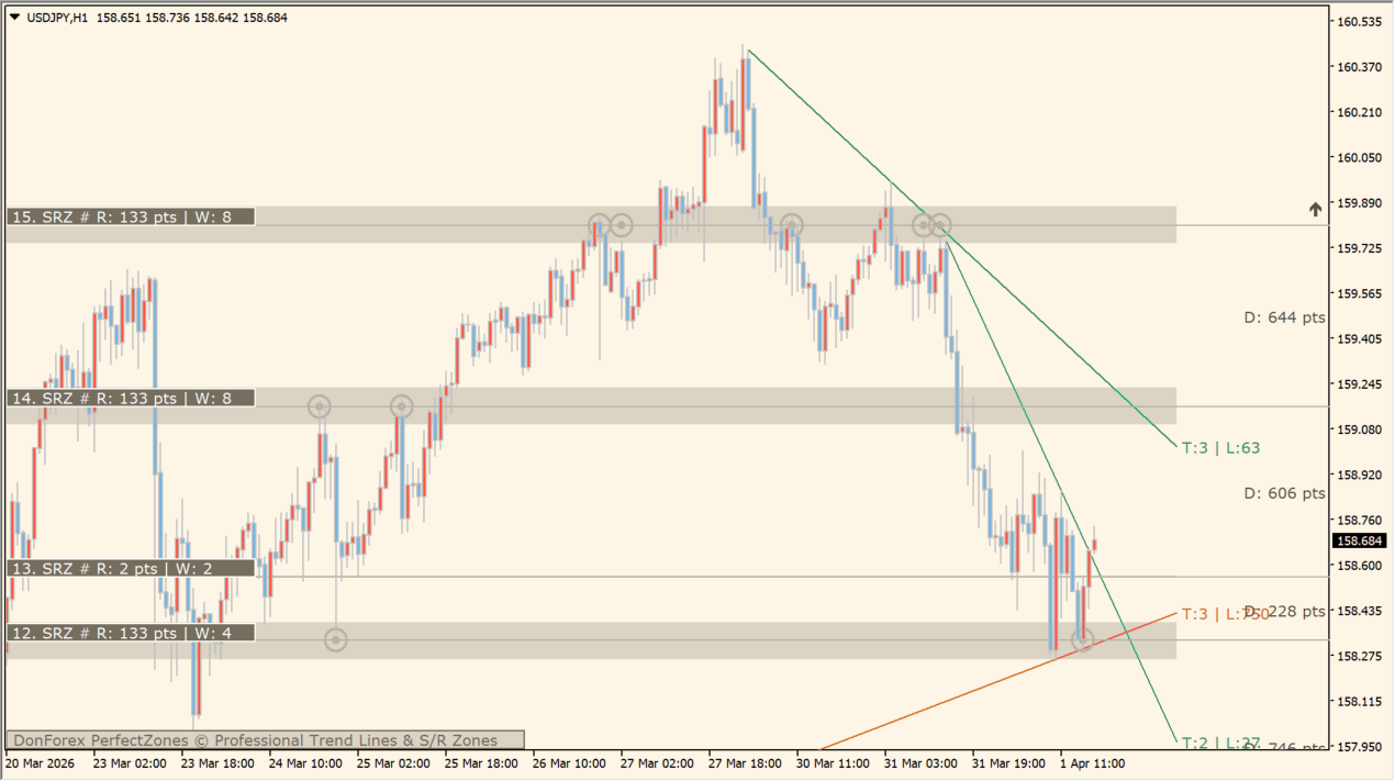 短期足よりもH1以上の時間足で使うと精度が安定しやすく、環境認識用として上位足に表示し、エントリーは下位足で行うマルチタイムフレーム分析と相性が良いインジケーターです。