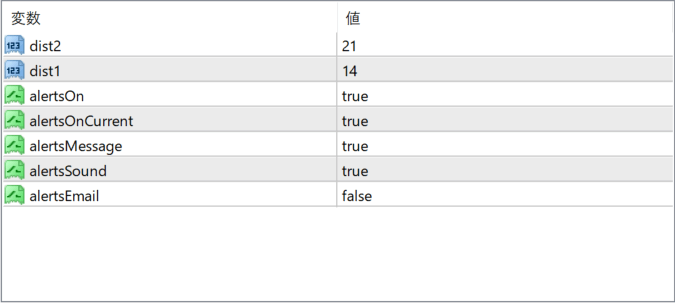 トレンド判定の感度に関わる距離設定で、シグナルの出現頻度に影響します。