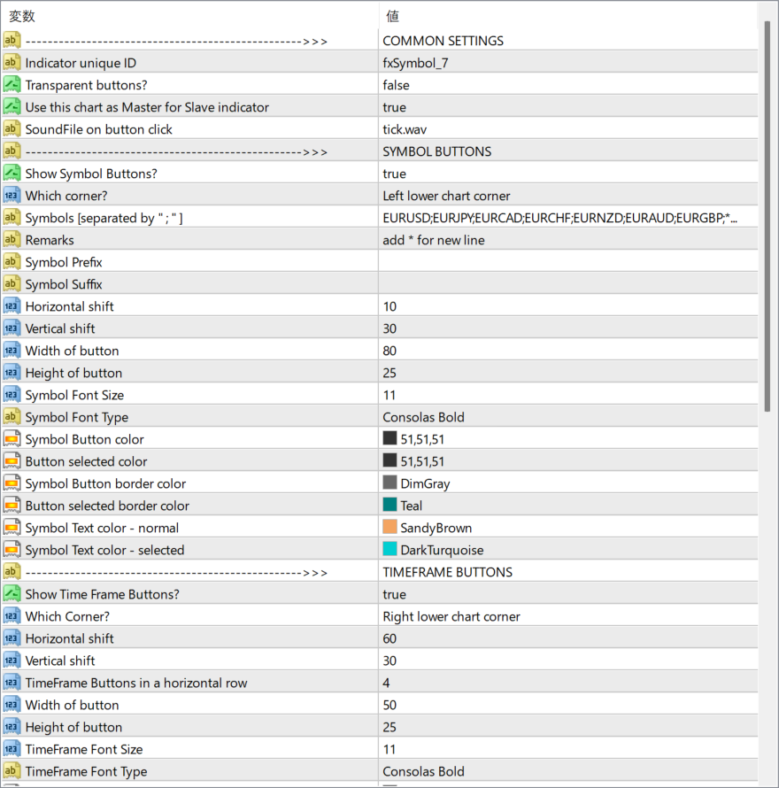 MT4のパラメータ設定