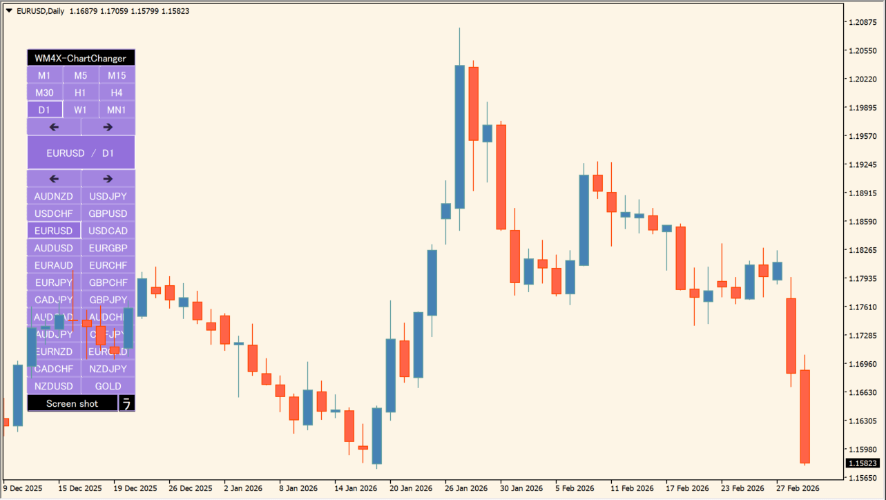 WM4X-ChartChangerこちらが展開して通貨と時間足を表示したところ