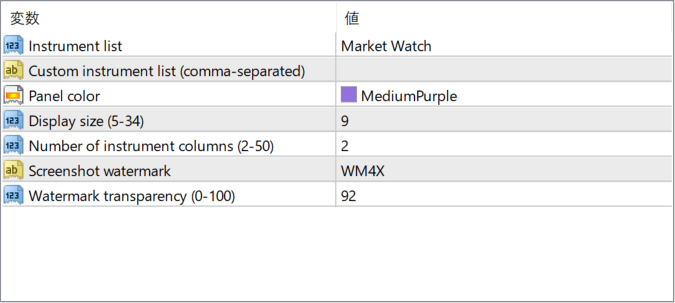 表示したい通貨ペアをカンマ区切りで指定します